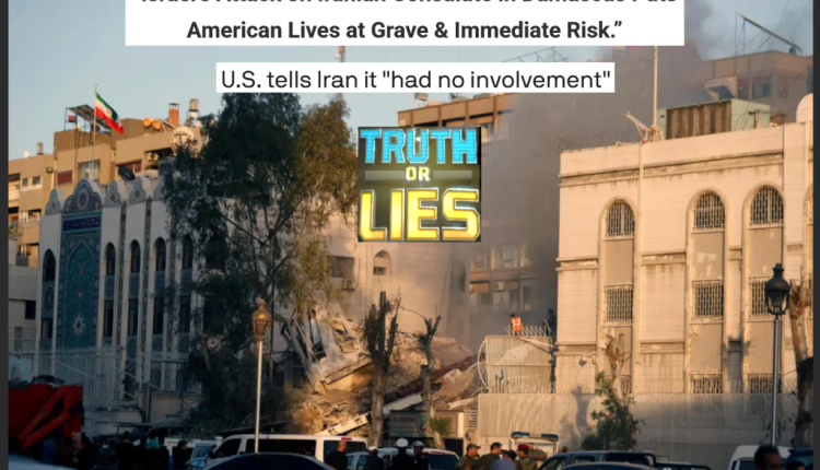 Israel’s Attack on Iranian Consulate in Damascus Puts American Lives at Grave Risk. | U.S. Says it had “No Involvement or Advance Knowledge” | ‘Is the US Telling the Truth or Lying’ & ‘What’s at Stake’ Analysis.